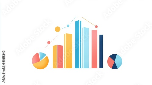 Comparison chart with bar and pie graphs, white background, flat design illustration