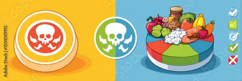 Comparison of Safe Food and Contaminated Food With Clear Labels and Bright Colors Highlighting the Differences for Educational Purposes