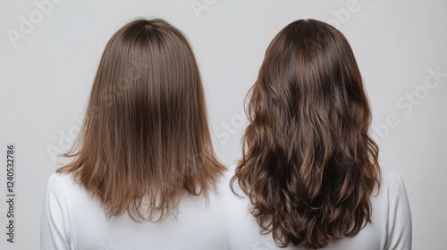 Comparison of thin hair and thick hair showcasing transformation and texture improvements. Generative AI