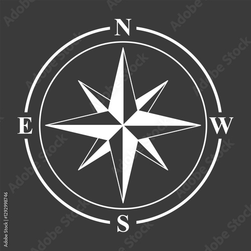 Compass, compass rose, navigation icon. Vector compass icons of north, south, east and west direction, flat design symbol
