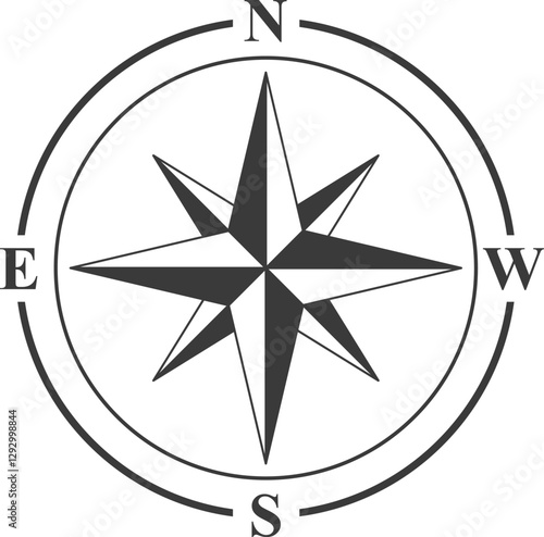 Compass, compass rose, navigation icon. Vector compass icons of north, south, east and west direction, flat design symbol