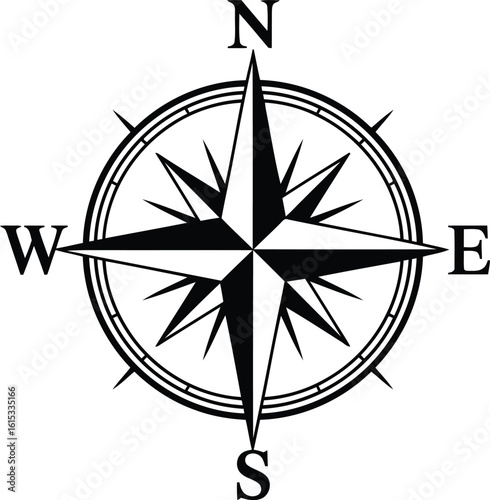 Compass Rose Design in Black and White with Cardinal Direction Symbols
