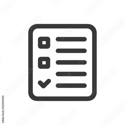 Completed Checklist Icon with Checkmark and Boxes, Dark Gray on White Background