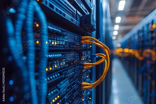 Complex Network Infrastructure with Interconnected Servers and Data Center Cables