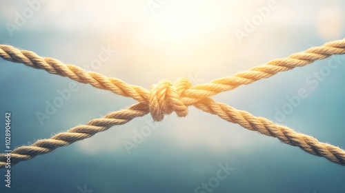 Complex web of interconnected ropes symbolizing intricate business relationships and antitrust challenges, with a focused foreground rope representing the effort to break monopolies.