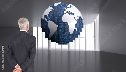 Composite image of rear view of mature businessman posing