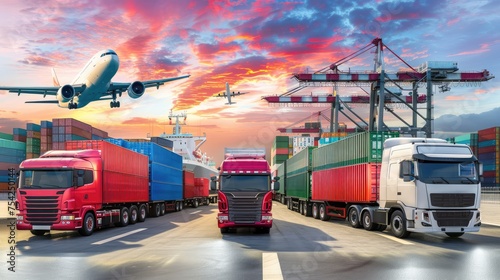 Composite image of transport modes and sunset