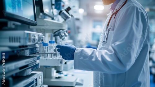 comprehensive examination of the body using laboratory and instrumental diagnostic methods. Professional health care researchers working in a medical science laboratory, technology of medicinal lab.