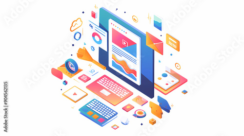 Computer app for website, office, business, design isolated on white background illustration wallpaper.