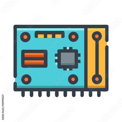 Computer circuit board illustration with components in colorful design
