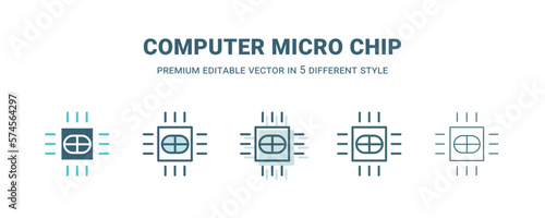 computer micro chip icon in 5 different style. Outline, filled, two color, thin computer micro chip icon isolated on white background. Editable vector can be used web and mobile