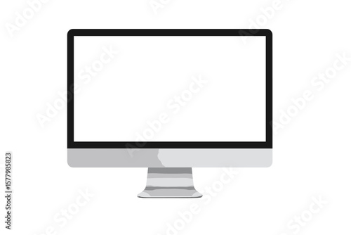 Computer monitor mockup. Realistic PC with blank white screen. Modern silver desktop display isolated on white background. Vector template for website, portfolio, and presentation.