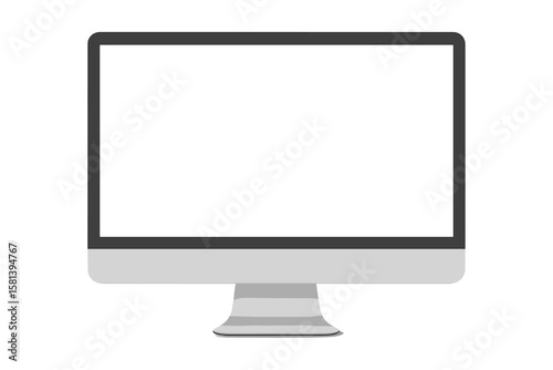 Computer monitor mockup with blank white screen. Modern silver all-in-one desktop device for presentation. Vector illustration template isolated on a white background.