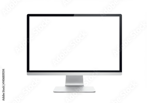 Computer monitor with a blank white screen displayed on a white background in a studio setting