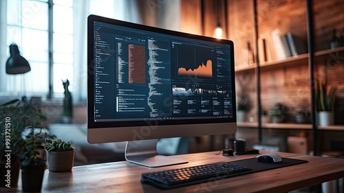 Computer monitor with crisp, high-resolution display, showcasing vibrant visuals and clean interface design