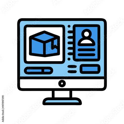 Computer Monitor with Educational Content Icon Representing Online Learning and E-Learning Platform
