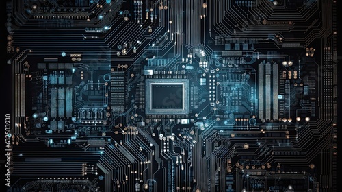 Computer Motherboard with swirling lines and futuristic motherboard circuits