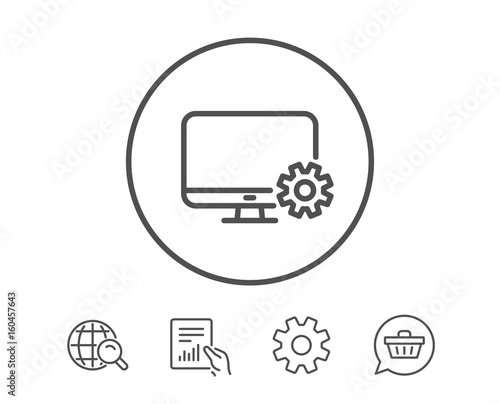 Computer or Monitor icon. Service Cogwheel sign.