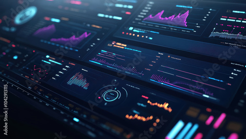 Computer screen displaying a complex dashboard with various charts and graphs.