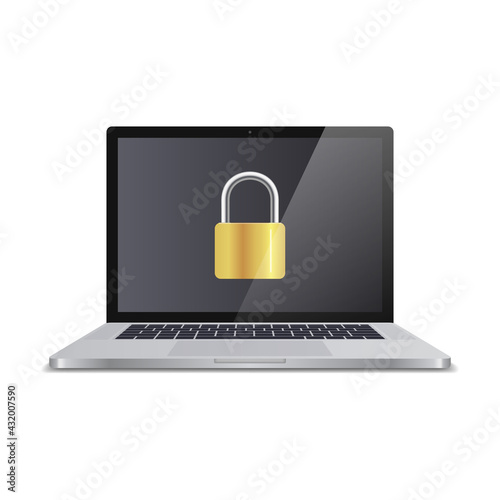 Computer security concept. Laptop with lock on the screen. Realistic illustration. Vector.
