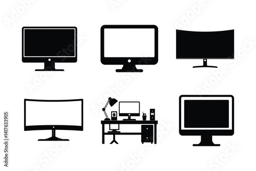 Computer Silhouette vector bundle illustration, Set of Computer Silhouette