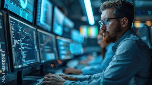 Computer Systems Analyst participating in a team meeting, discussing system integration strategies and proposing solutions for enhancing overall efficiency. Generative AI.