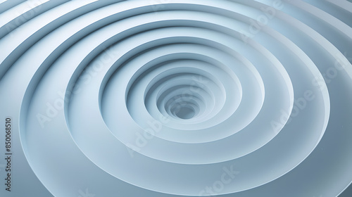 Concentric linear offset white rings or circles steps lit from top background wallpaper banner, close up flat lay top view from above