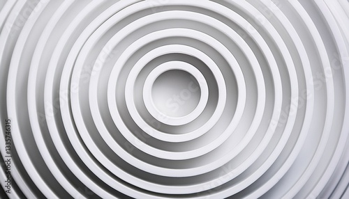 Concentric randomly offset white rings or circles steps fading out background wallpaper banner, close up flat lay top view from above. abstract modern minimal white background