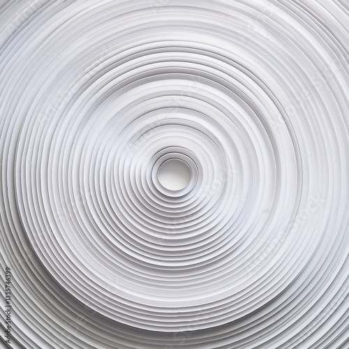 Concentric randomly offset white rings or circles steps fading out background wallpaper banner, close up flat lay top view from above. abstract modern minimal white background