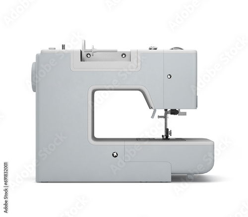 Concept atelier, fashion studio, fashion designer, tailor white sewing machine back view 3d render on white