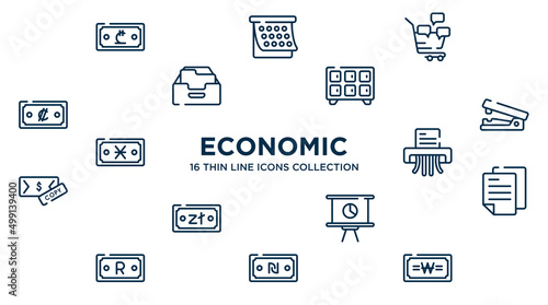 concept of 16 economic outline icons such as affiliate, checkbook, calculate, responsability, ingots, digital, invest, comments, cash money vector illustration.