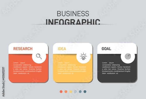 Concept of arrow business model with 3 successive steps. Three colorful graphic elements. Timeline design for brochure, presentation. Infographic design layout.