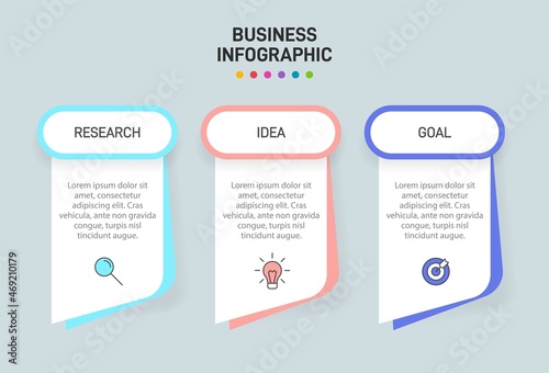 Concept of arrow business model with 3 successive steps. Three colorful graphic elements. Timeline design for brochure, presentation. Infographic design layout.