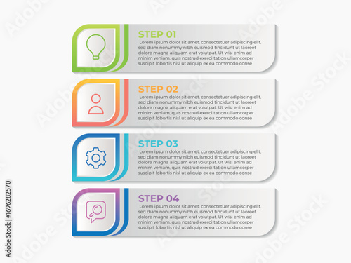 Concept of arrow business model with 4 successive steps. Six colorful graphic elements. Timeline design for brochure, presentation. Infographic design layout
