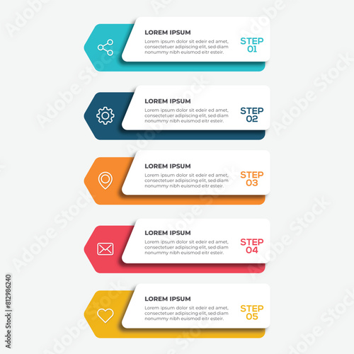 Concept of arrow business model with 5 steps. Five colorful graphic elements vector design.