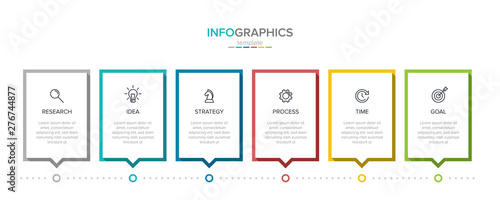 Concept of arrow business model with 6 successive steps. Six colorful rectangular elements. Timeline design for brochure, presentation. Infographic design layout.