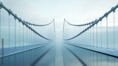 Concept of business success bridge illustrating industry strategy and economic solutions that connect two separate paths, represented in a 3D render