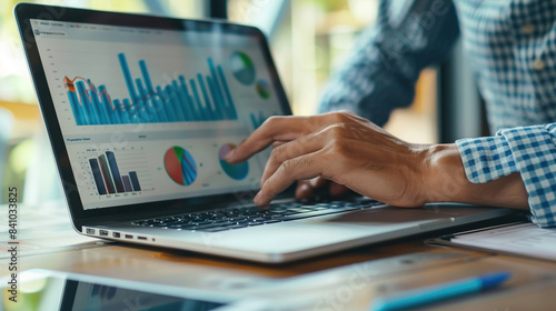 Concept of business vision. Digital online marketing, Financial planning and investment business development. A businessman examines a graphical representation of sales data growth on a virtual screen