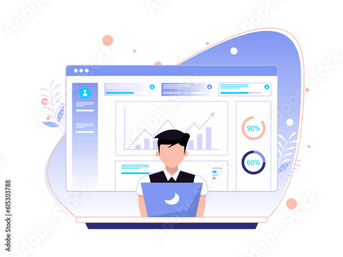Concept of digital media services. man explains today's company data. flat vector illustration.