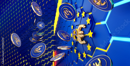concept of E-Euro, Europe, e-Euro currency hexagonal grid background 3d-illustration