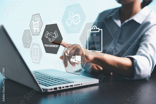Concept of procurement, supply chain management, represented by related logistics, inventory icons is essential for ensuring efficient business operations. efficient flow, storage of goods, services.