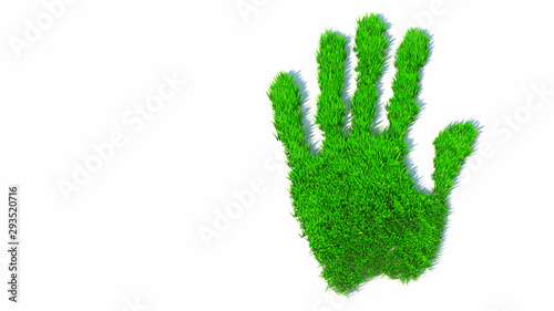 Concept or conceptual green grass handprint isolated on white background. A metaphor for ecology, environment, recycle, nature conservation, pring or protection against global warming 3d illustration