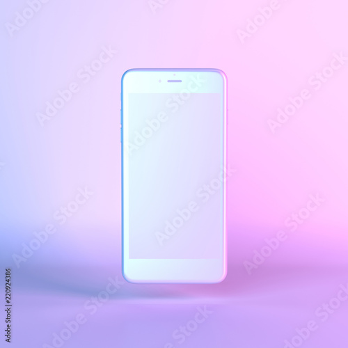 Concept White Smart phone with colorful ultraviolet holographic neon lights. Creative concept. 3d render