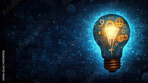 Conceptual Business Idea with Lightbulb, Gears, and Binary Code