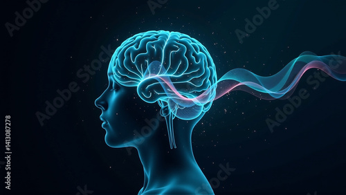 Conceptual Double Exposure: Human Brain Merged with Abstract Quantum Wave Function