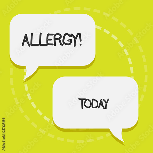 Conceptual hand writing showing Allergy. Concept meaning damages in immunity due to hypersensitivity get it diagnised Blank White Speech Balloons Conversation on Pastel Backdrop