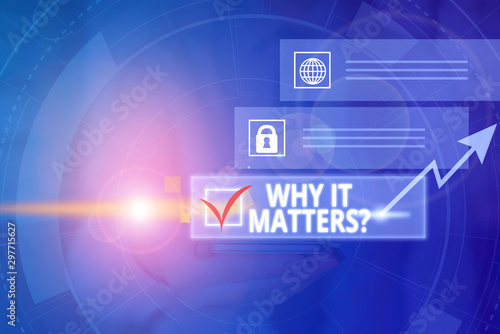 Conceptual hand writing showing Why It Matters Question. Concept meaning most important thing to be done when involved in situation Picture photo network scheme with modern smart device