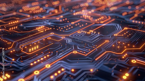 Conceptual illustration of a glowing circuit board, highlighting tech advancements in business.