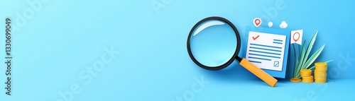 Conceptual Illustration of Service Feedback and Magnifying Glass on Blue Background