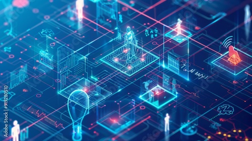 Conceptual image of a digital health ecosystem with integrated services and smart technology, highlighting advancements in healthcare delivery.